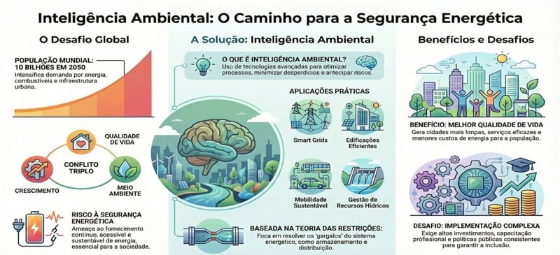 Nesse contexto, a inteligência ambiental, que coincidentemente tem a mesma sigla da inteligência artificial, surge como uma abordagem estratégica capaz de integrar tecnologias digitais, gestão inteligente de recursos e consciência ecológica, oferecendo respostas concretas aos desafios da segurança energética.