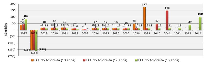 Figura 4 – Fluxo de Caixa Livre do Acionista (CRCAP de 10 vs. 12 vs. 15 anos).