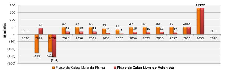 Figura 3 – Fluxo de Caixa Livre da Firma e do Acionista (CRCAP de 10 anos).