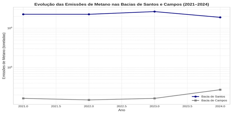 A Bacia de Santos conseguiu reduzir suas emissões de metano em 2024, enquanto a Bacia de Campos, com produção menor, teve um salto para quase o dobro do ano anterior. Temos a oportunidade de monitorar emissões de metano da maior frota de FPSOs do mundo