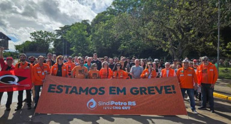 Trabalhadores em greve no Rio Grande do Sul (Foto: Divulgação FUP)